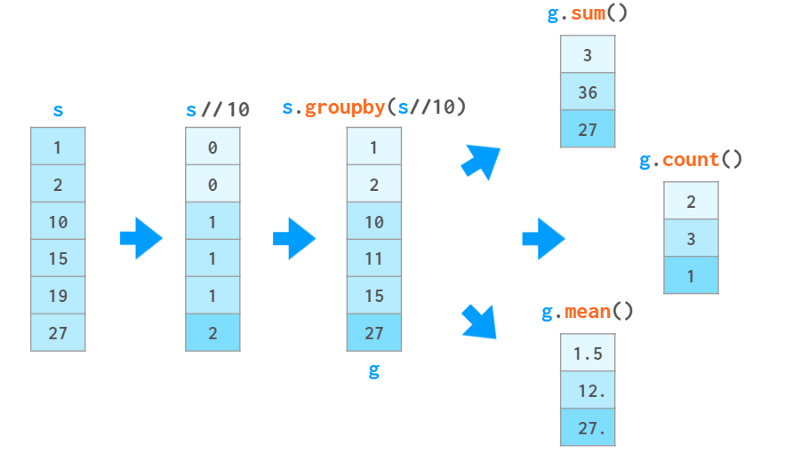 除了sum之外,Pandas还支持各种聚合函数:mean、max、min、count等。